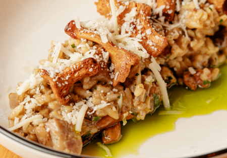Gotowany na winie ryż arborio z grzybami leśnymi, cebulą, czosnkiem, pietruszką oraz pecorino romano D.O.P. | 450g