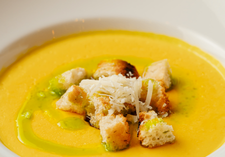krem z dyni/mleko kokosowe/chilli/płatki migdałów/oliwa pietruszkowa/pieczywo | 250g
