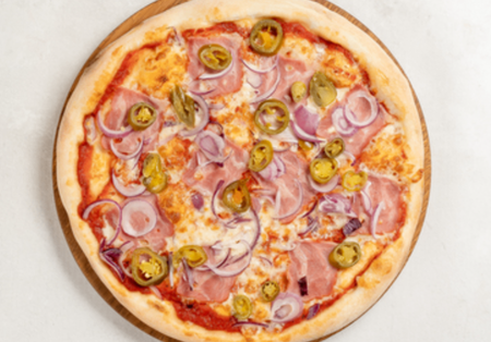 pomidory pelati/mozzarella/boczek/cebula/jalapeno