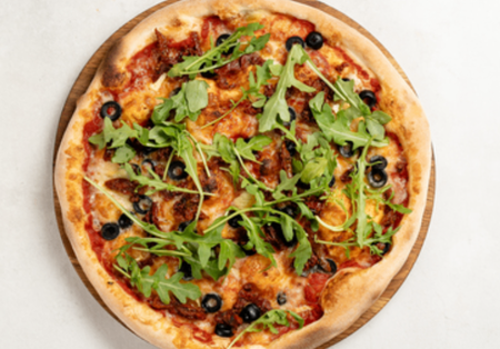 pomidory pelati/mozzarella/camembert/oliwki/suszone pomidory/rukola