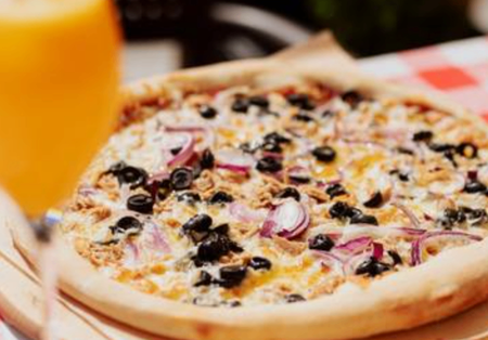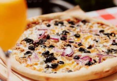 pomidory pelati/mozzarella/tuńczyk/oliwki/cebula