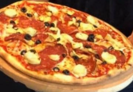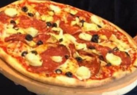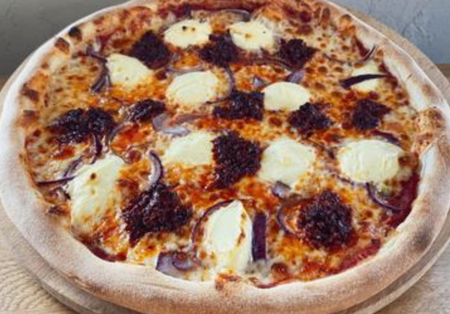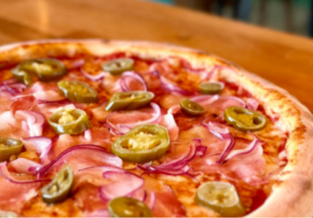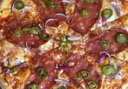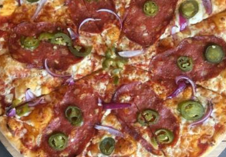pomidory pelati/sos piri piri/mozzarella/salame spianata piccante/cebula/jalapeno/pieprz/tabasco