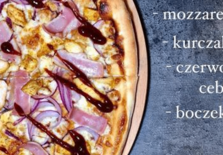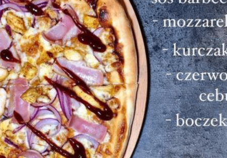 sos bbq/mozzarella/kurczak/boczek/cebula