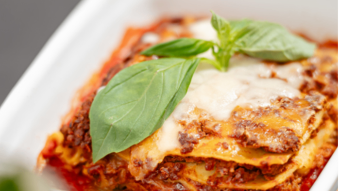 Płaty makaronu przekładane ragu z beszamelem i mozzarellą | 400g