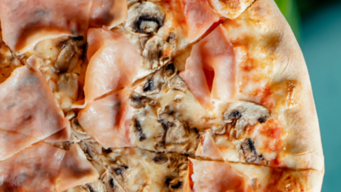 pomidory pelati/mozzarella/włoska szynka gotowana cotto/pieczarki